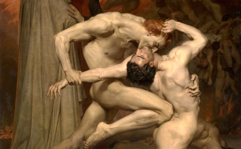 بعد فشله في الفوز بمسابقة روما للفنون مرتين عام 1848 و 1849؛ أراد الفنان العظيم «ويليام أدولف بوجيرو-William-Adolphe Bouguereau» ان ينتقم ويثبت كفاءته، فقدم الفنان الشاب لوحة أكبر مستوحاة من دانتي. والتي كانت أعماله محبوبة من قبل فناني المدرسة الرومانسية الذين استولوا على كل جمالها الدرامي في أعمالهم .